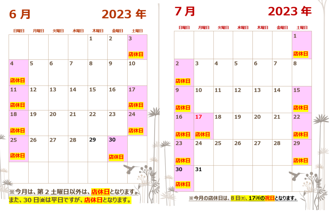 ※下記のカレンダーよりご確認よろしくお願い致します。