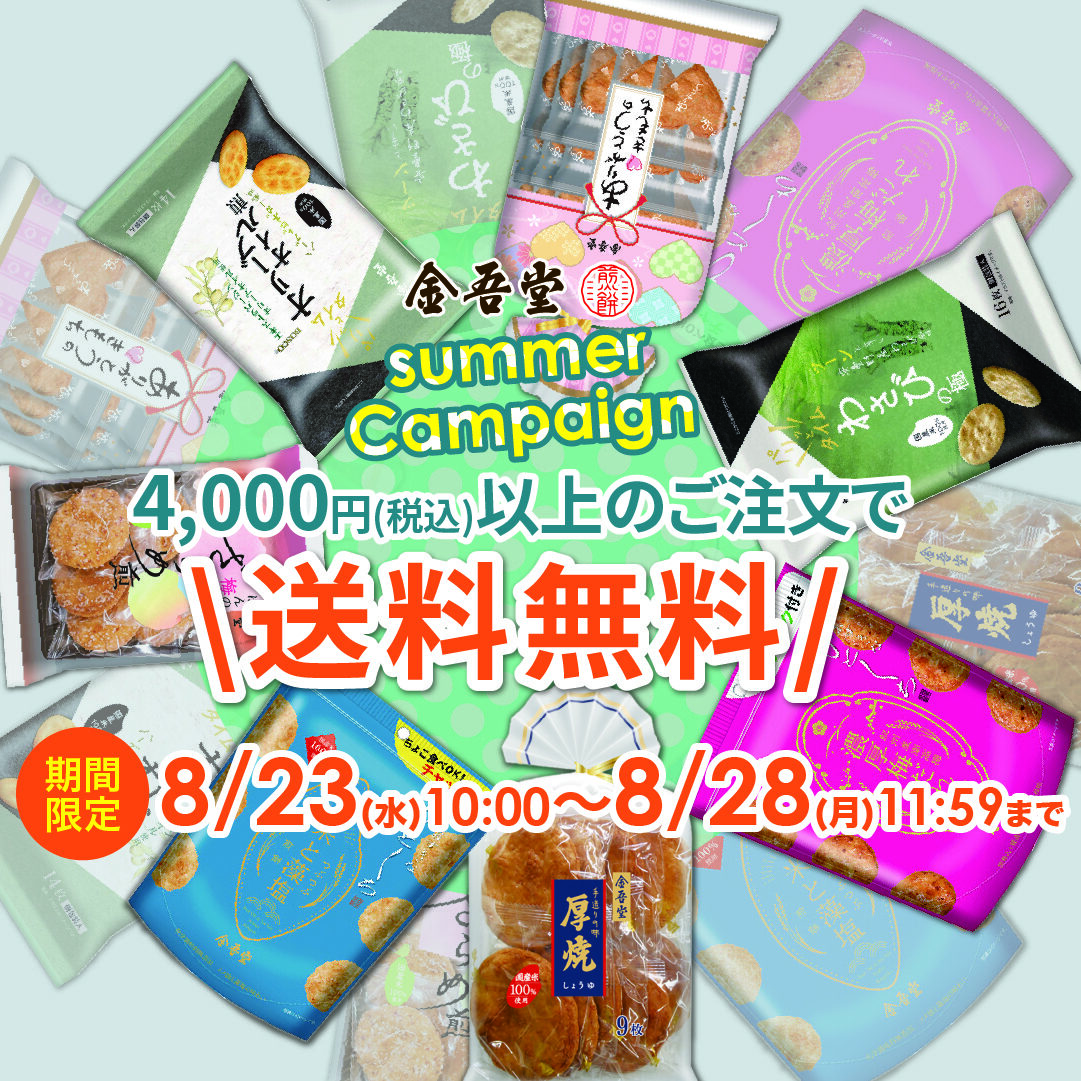 8/23(水)10:00~28(月)11:59にご注文いただきますと、4千円以上送料無料となります。オンライン限定商品もございます。是非この機会にご利用下さいませ。