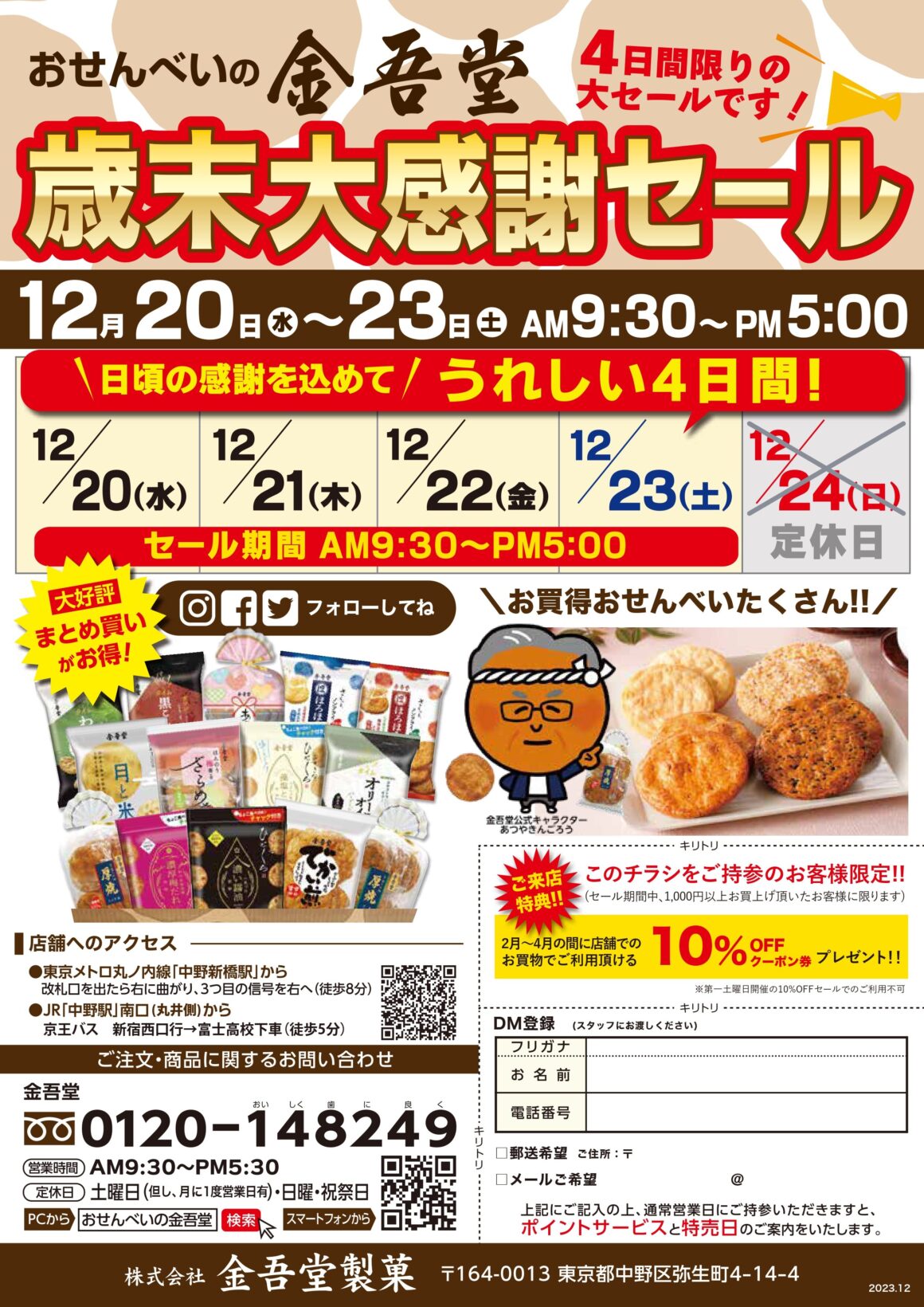 ●大感謝セール 12/20~23 4日間開催決定!!(9:30~17:00)